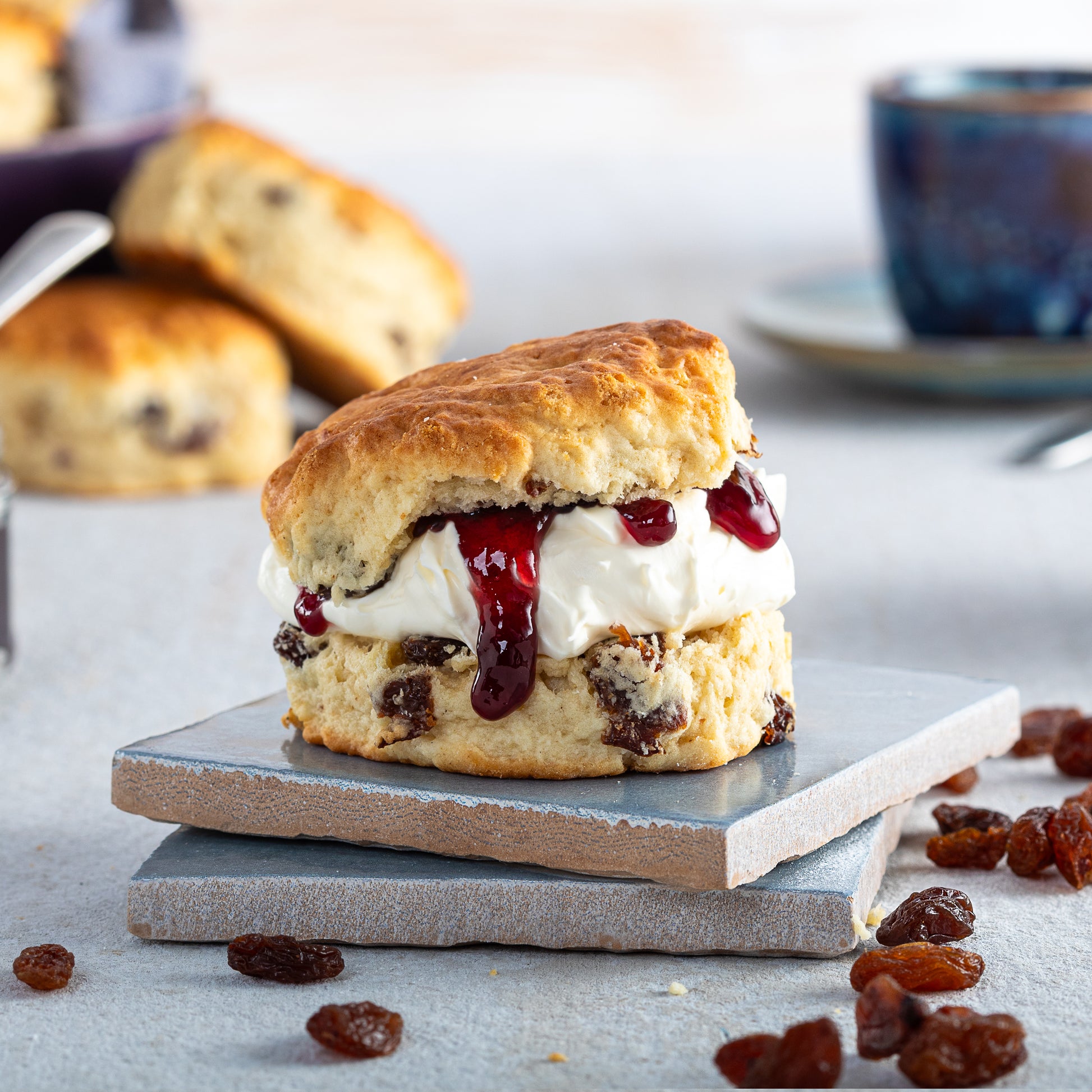 コクのあるクロテッドクリームを練り込んだ生地に、厳選したサルタナレーズンをたっぷりと加え、しっとり感と軽さ、果実の甘みのバランスを高い次元で実現。